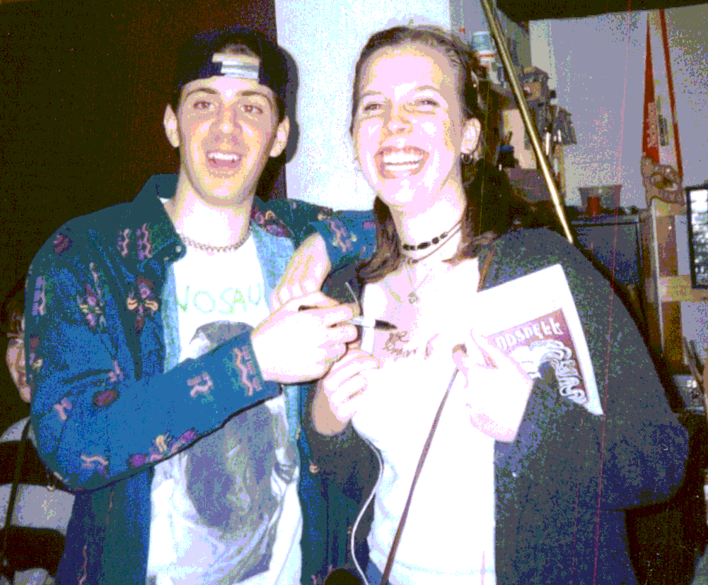 Joe signing the one and only rock star autograph he's ever signed. The "lucky" victim is Elizabeth Murphy after a Common Thought show in Matt Borkowski's garage.