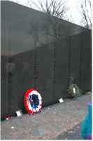 With extreme effort I pulled my hand from the wall and put my arms around the woman who has loved me and comforted me after my nightmares for over seventeen years. I looked back toward the center of the wall where the flags snapped smartly in the breeze. Old Glory floated lazily between the state flag and the black "POW's/MIA's" flag. A sudden gust of wind caused all three to snap straight out from the pole. My eyes drifted back to the wall. The names there looked the same, but the feeling I got from seeing them was now different. No longer did I feel sorry for these fallen heroes; I felt an almost aching pride to have been one of them.