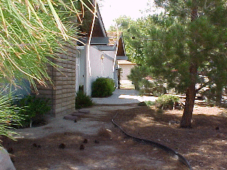 Here you can see some of the pine trees that surround the house, and the chimney to the fireplace in the livingroom.