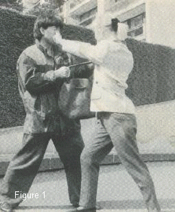 L'agression de face peut être verticale, le coup venant du haut ou du bas. Vous pouvez l'esquiver en faisant un pas vers la gauche ou vers la droite.