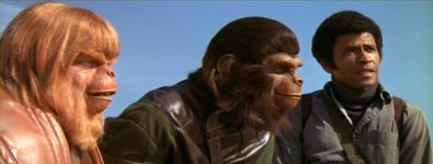 Ricardo Montalban and Roddy McDowell return, Mcdowell this time playing Cornelius' son, who names himself Ceasar. Again filmed with a reduced budget, the special effects team opted for pull-over masks for most of the gorillas and apes instead of the more precise facial makeup, which was reserved for the main ape players.