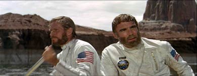Charlton Heston as Taylor (with fellow astronaut) leave the 20th century behind