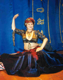 | Becoming familiar with Middle Eastern culture and history, and finding a love of the dance, has opended up even more areas of interest for my costuming.  Currently, in addition to costuming for my business and for Gypsy Caravan, I am working hard on a new wardrobe for the SCA, as well as challenging myself to research and create historically accurate Middle Eastern clothing patterns for both dancers and re-enactors.  Much of M.E. clothing history is patchy.  The research is difficult and many findings are sketchy and debatable, but that makes it all the more intriguing! To see my inventory of Middle Eastern Dance costumes, visit Mahirimah's Tribal Costumes page at Kamikaze Costumes at www.kamikazecostumes.com To learn a little more about what I have learned about Middle Eastern Dance, visit Mahirimah's Middle Eastern Dance and Costume Pages. Also, visit my Dance Links page to begin your own research! To learn more about my love of costuming in general, visit my Costumer Page!!  |