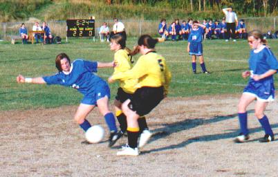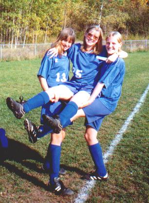 Jessica Larrabee and Jessie Plourde give Kristy Raymond a lift