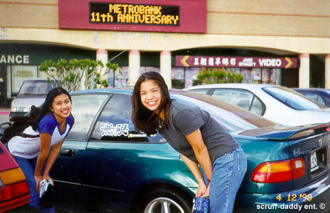 hehe...LOVE this pic...kay, that's hoan-my on the right and me on the left...we're SO f*ckin retarded sometimes! this pic was taken in houston...i have NO idea whose car this is..but it's pretty huh? we like, went to the parking lot and kinda picked out all these cars and to take pics with (uh...can you say 'barbarians?')