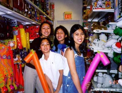 margaret(-doesnt she look cute?) and cathy in the back; tina in the middle and lin up front...hehe...so funny, huh?