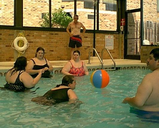 Ok, OK! You were patient enough to view my son's swim pics...so now you will be rewarded with some big fat girls in bathing suits....oh, and yeah...me in my transparent bikini *embarrassed blush*...tee hee hee.