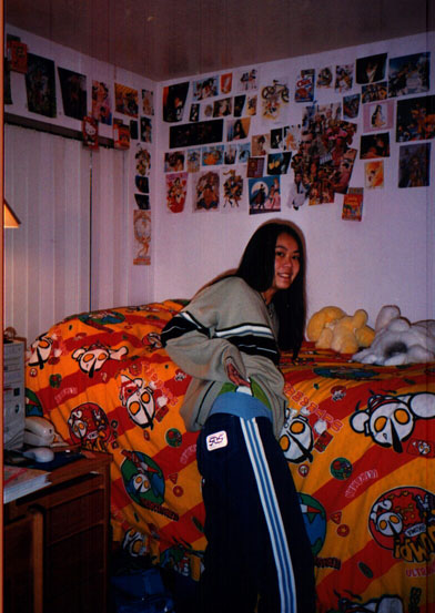 This is how I dress... pretty much like a guy, but what can I say. Guys have the more comfortable clothes. Oh yeah, this is my dormroom, now it's changed, and soon I'll be outta there, but hey, it's a cute picture! Just Kidding!