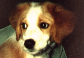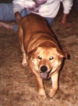 This is my dog Claire and I am in the background. I love this dog so much, she is so sweet and kind.