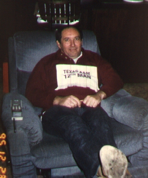 This is my dad sitting in the living room watching a Texas A&M game. GO AGGIES!!!