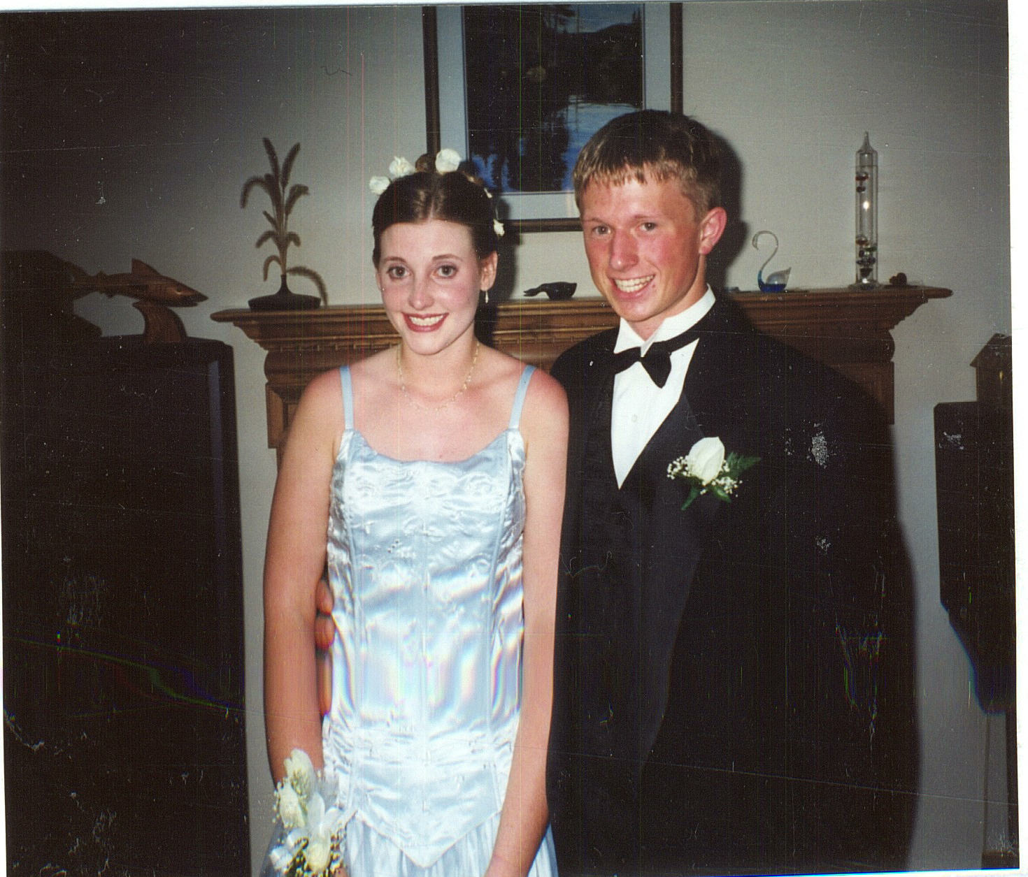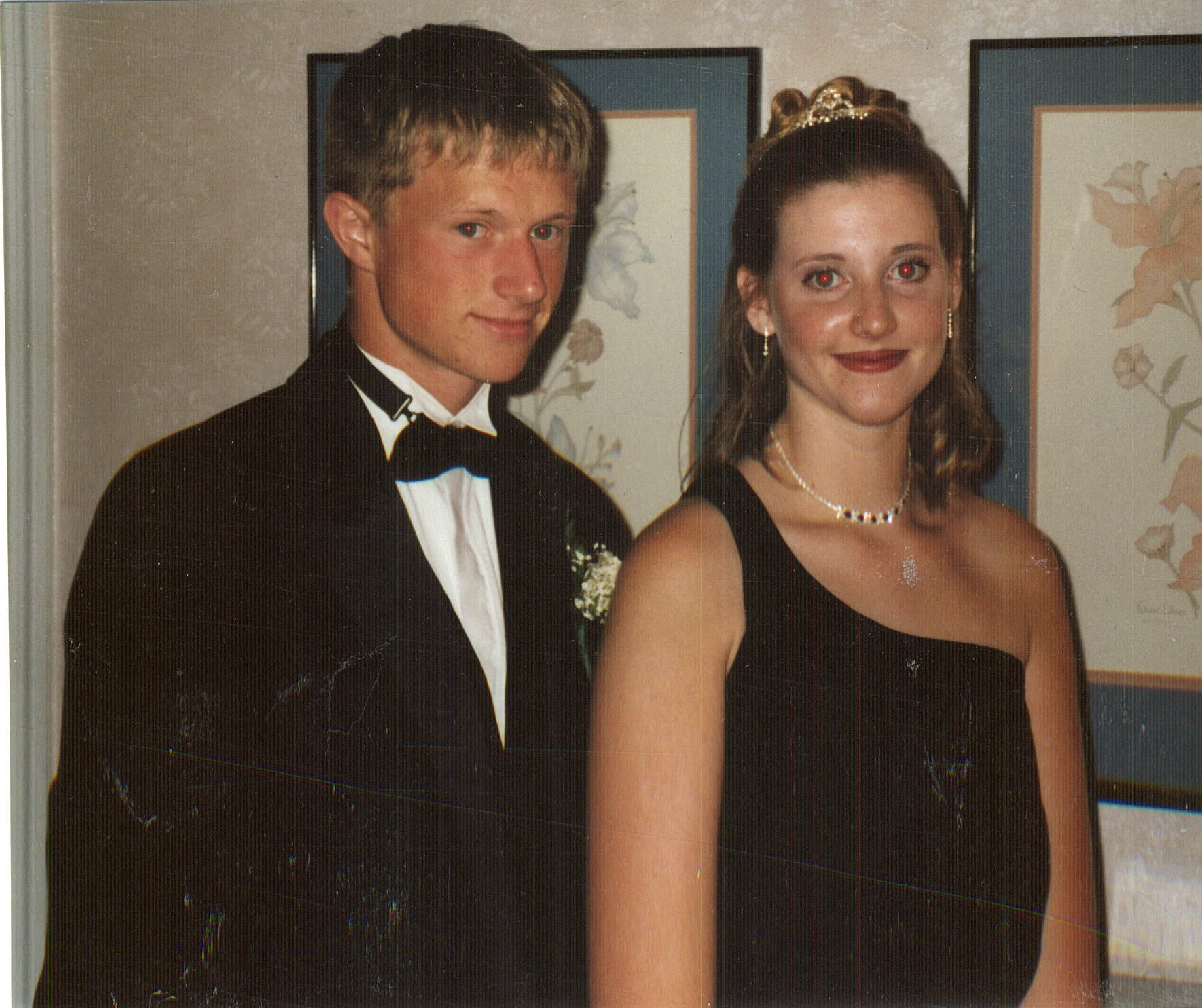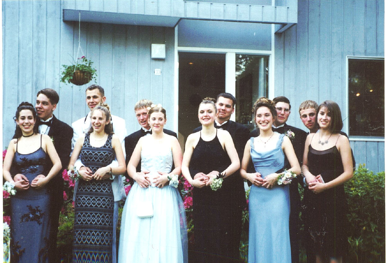 | Here are me and Jason going to both of our proms. This is us going to my prom on the left and us going to his prom on the right. I think I look like I am on drugs in the one on the right. |
