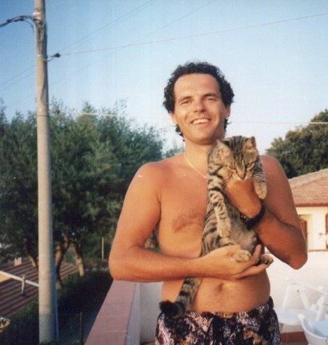 Pallino, gatto girovago dell'Isola d'Elba, qui mentre sopporta con malcelata insofferenza che il fotografo sia pronto a scattare la foto (giuro che non ho mai più avuto una pancia così).