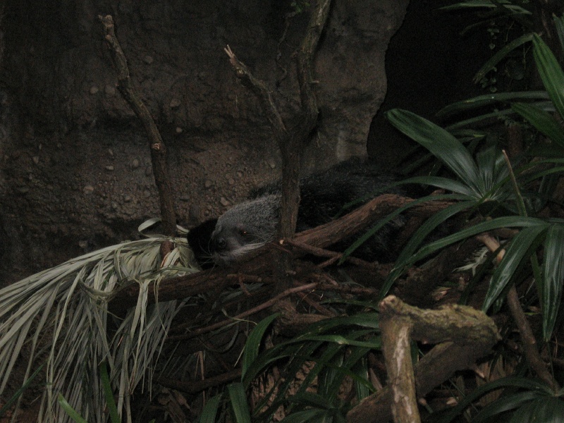 That's a dwarf mongoose far left, and a dork Oberlin far right. Just for scale - that's a monstrous exhibit for those little carnivores, compared to the one we have. Very panoramic.