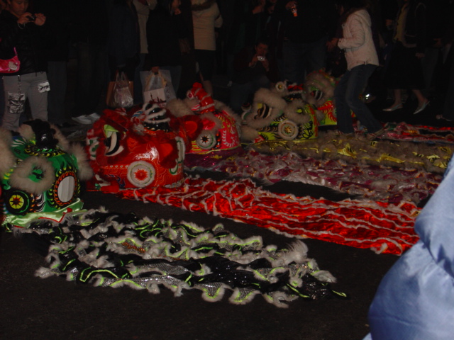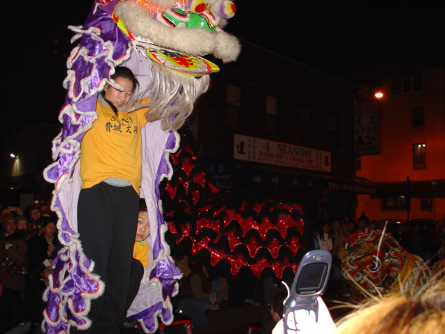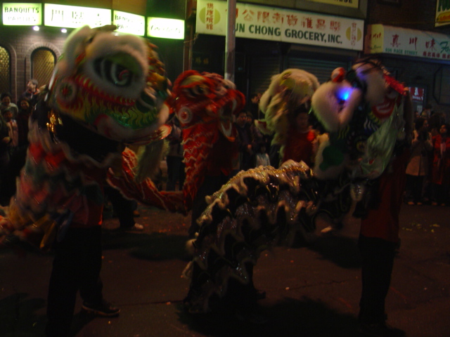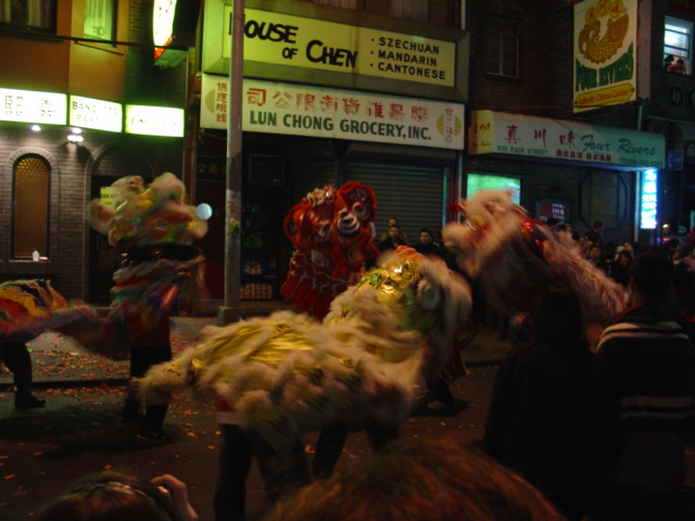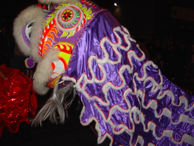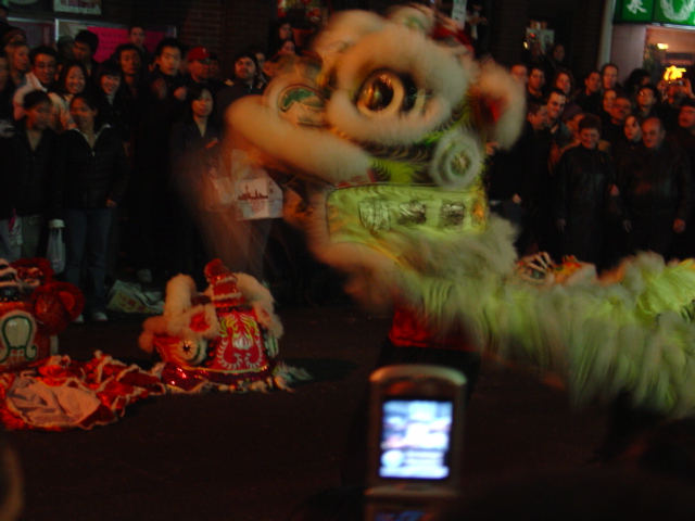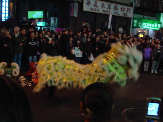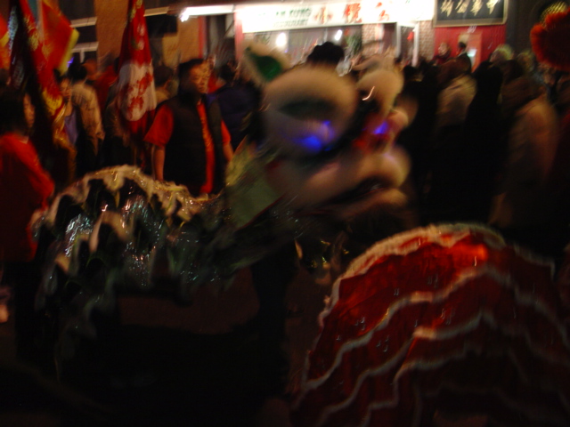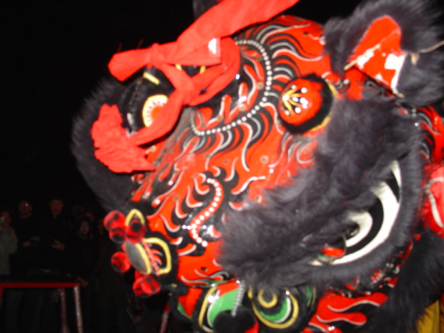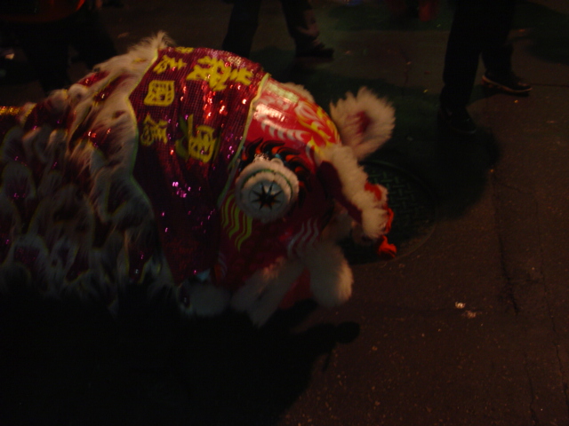 Thankfully, they had spotters. It's hard to see in the dark when you're the back-end, behind somebody's ass underneath a Chinese lion costume. I'd guess. You can see how parade-watchers are quite on-top of the performers!