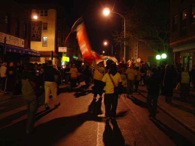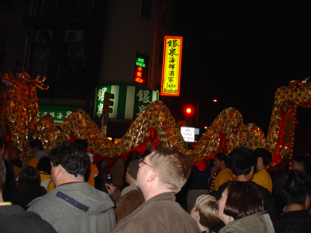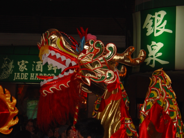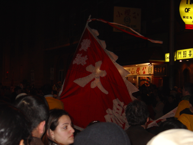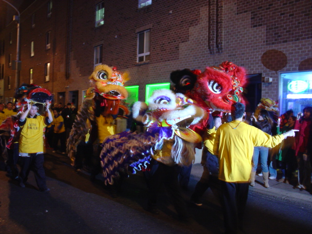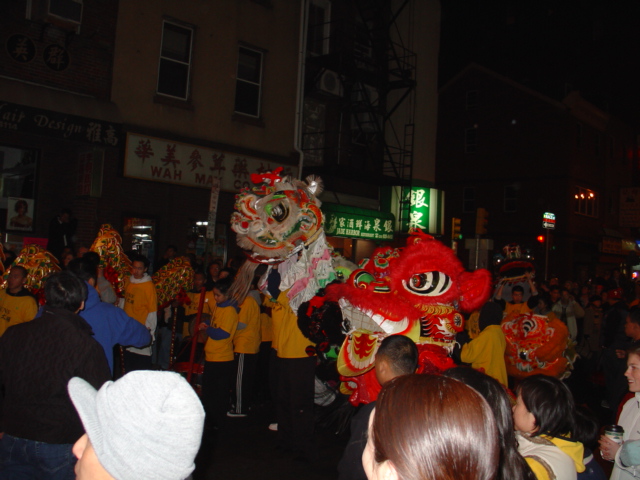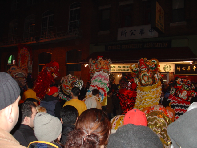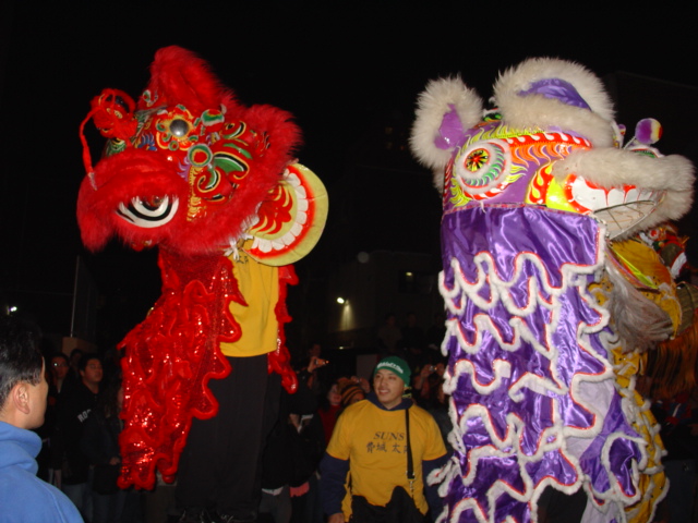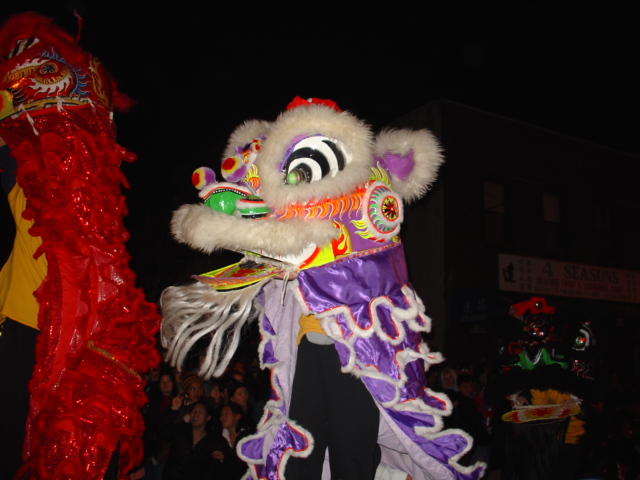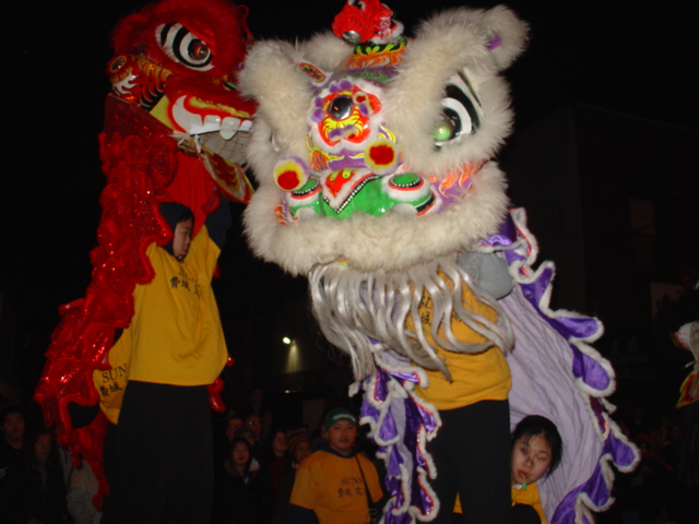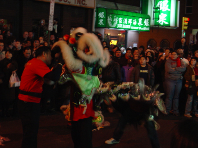 Thankfully, they had spotters. It's hard to see in the dark when you're the back-end, behind somebody's ass underneath a Chinese lion costume. I'd guess. You can see how parade-watchers are quite on-top of the performers!