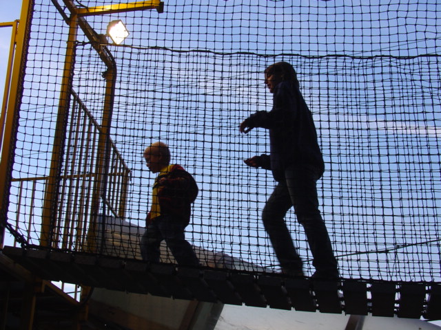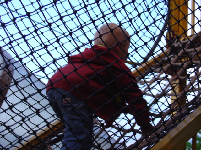 Tristan wanted to go through the course again, by himself - he had some trouble on the rope bridge, but he came through.