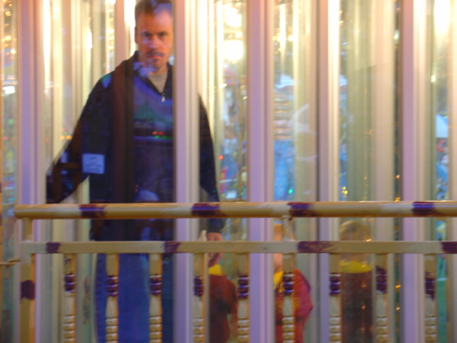 Tristan and I went through the maze of mirrors. He walked full force into one pane of glass when he was pretending to show me the wrong way to go. It looked like it HURT like crazy, but he tried to laugh it off. Kid had a ginormous welt on his forehead.