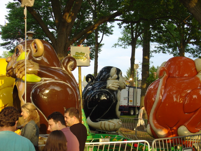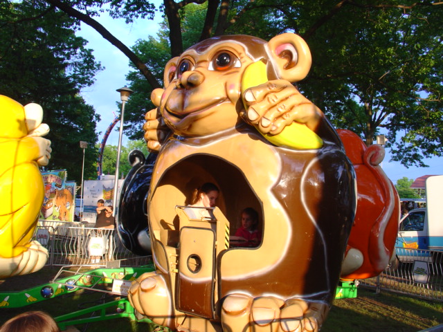It's a banana-holding twist on the Tilt-a-whirl - you can turn the wheel to spin, while the whole thing goes in a circle. Oh yeah, there was no way I was getting in there.