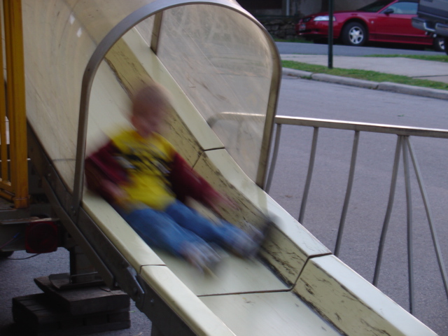 And then we slid down at the end of the maze. My swoosh is extra swooshy.