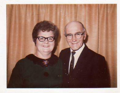 (Right) Grandma Oberlin, Big Poppa's mama. Doris. She can bowl you outta the rec-center lanes, so watch out. And she can bake a red cake with one hand. She hails from the city of my birth. My late Grandpa Clyde passed away when I was 9, and his father was my middle-name namesake. Here he is with Grandma, circa 1969.