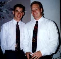 This is me and my big bro Jeff, celebrating my high school graduation, '92. I still had too much hair and braces, and he still was BUILT like a truck. Mess with me and he may show up on your porch.