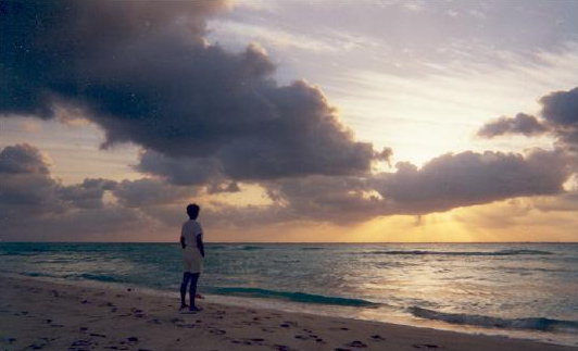 This is a killer shot of my mom on the beach in Mexico, February '02. Taken by some random citizen because Pops was out jogging or something.