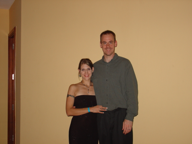 It's late, and we're a little shiney, but this is pretty much the only picture of us together. The camera was on the stairs on a timer.