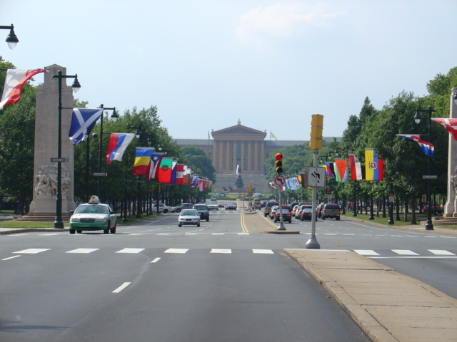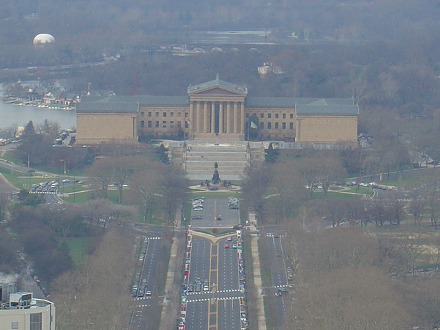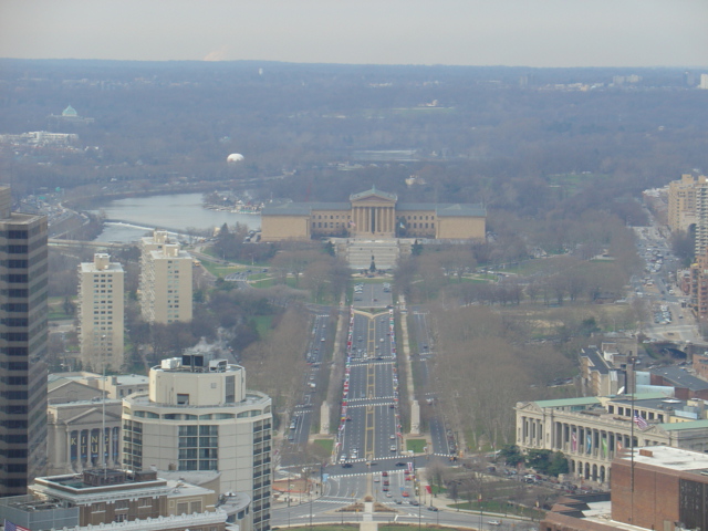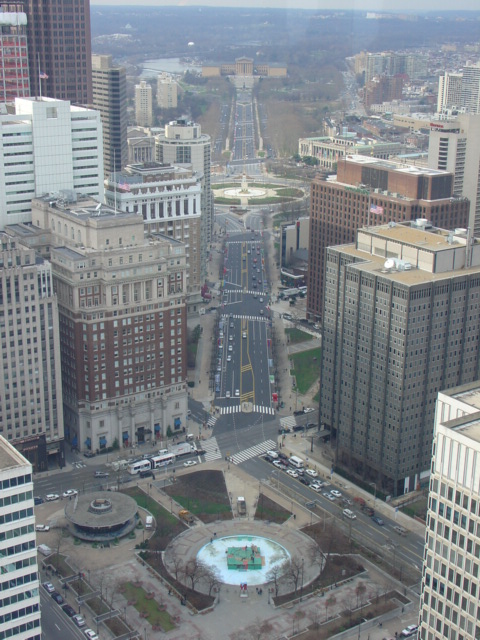 Ah, the entire Parkway from the museum down to Love Park. Dig the fountain. That big building that gets cut off is the 4th tallest building in the city, the Bell Atlantic tower.