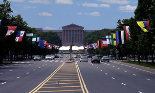 The beloved Art Museum where Rocky made his fateful run, again taken from the Parkway. The white tent in front is temporary, placed there for the FirstUnion USPro Cyclist race.