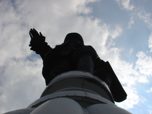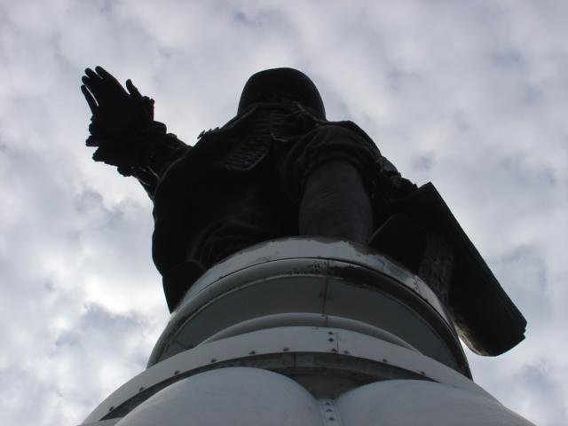 The entire thing is enclosed in glass (you can see the observation deck that cirlces underneath the statue in the previous photos) but there was one hatch open directly underneath Mr. Penn. So these shots were taken sans barrier. Here's another one [1/07] with slightly more light coming into the shutter...