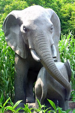 Elephant and calf, sculpture at the Philadelphia Zoo. This is one solid piece of stone.
