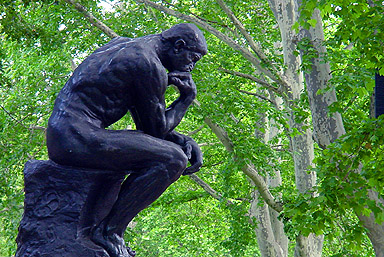 A sculpture of The Thinker in front of the Rodin Museum on the Parkway at 22nd St.