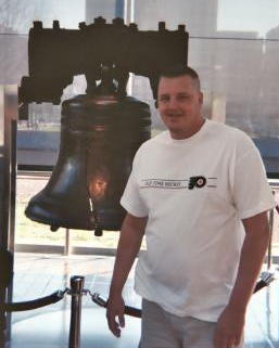 Stan The Man at the Liberty Bell. You can see *through* the crack. Cool.