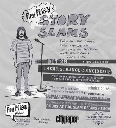 They weren't good enough to beat the eventual winner, a guy curiously named "Tree", and his story was concise and pretty funny and under the time limit (and so noted by the host) and he got a spot at the end-of-the-year Grand Slam, where the previous 10 monthly winners compete for the "Greatest Storyteller In Philadelphia" title.
