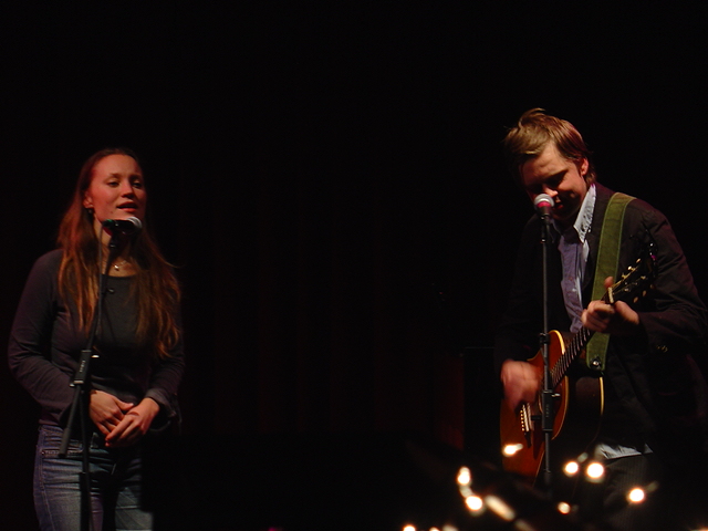 I wish I remembered the song during which this was taken... they look very solemn, almost sad. She seemed a tad uncomfortable on stage, waiting for her part to come along so she could sing. I like the feeling of this picture.