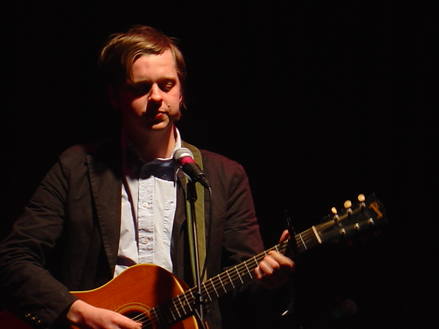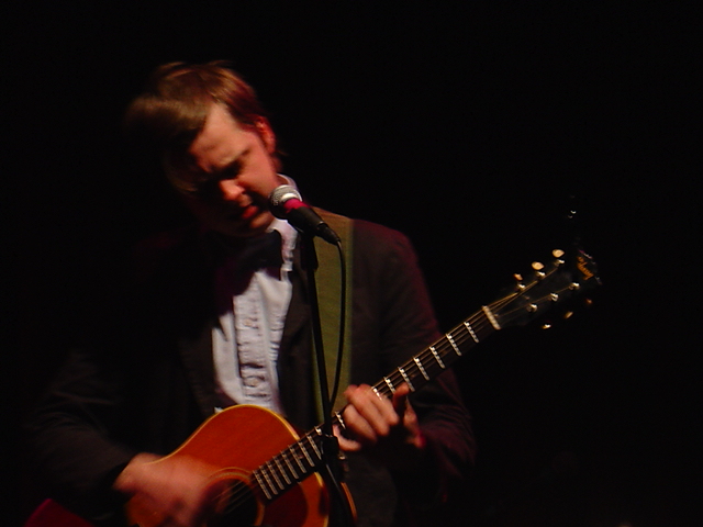 I had tickets to see Teitur in September at World Cafe Live (downstairs), but upon arriving at the venue, found out that he was having "visa problems" and was not allowed to enter the country. His merch table was there, though! So were his opening acts (though one was delayed by a late train). Kinda odd, and a bit of a bummer - but it didn't cost me anything, and I had a feeling he'd reschedule the gig when he got his shit together. Fast forward to December, and Teitur was coming back, without his band, and playing in the upstairs (smaller, more chatty) room. And while lacking some of the payoff musically, a solo Teitur show is a very enjoyable evening. I got a small table relatively close to the stage and got some cool pictures, but only when he was on guitar. He played half of his songs on piano but the light back there was crap. The links above are to the intro and song called The Visa Song that he mentioned a couple times prior to playing it late in his set; he fully explained exactly what happened and why he missed the earlier gig, and did so in his usual disarming, charming, funny way. Listen and laugh.