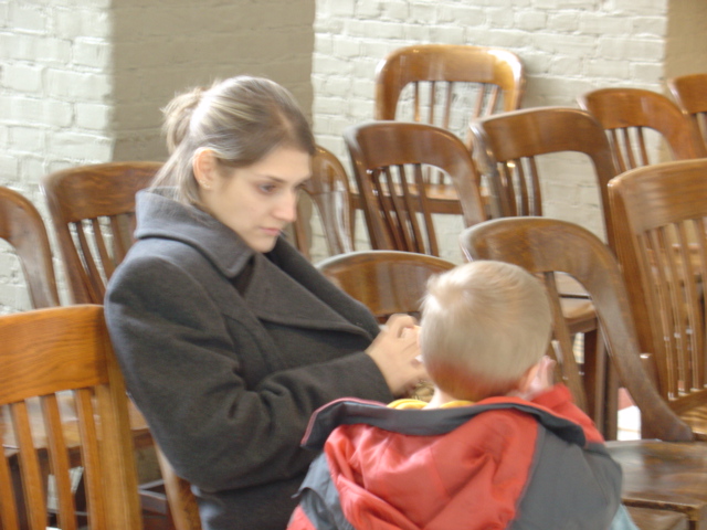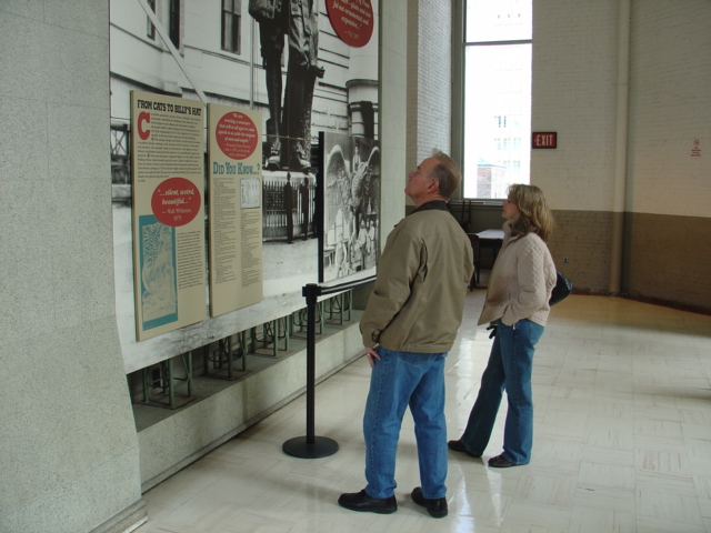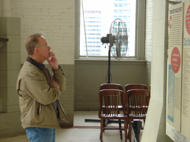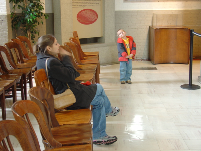 We were all hanging out on the top floor of City Hall where the elevator opens up to take you up to the tower. There are a bunch of artifacts and photos and informational signs on the origins and building of City Hall. Pretty interesting stuff. Dad is the only one who really seems into it, though.