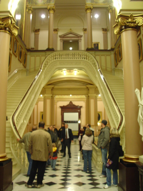Our beloved guide (by this point he was cracking everyone up with his wise-ass remarks - and sometimes unintentional - dry wit) in Ionic Hall, decorated in 1890. There were a couple of French folks on our tour and he kept making fun of them, for being French!