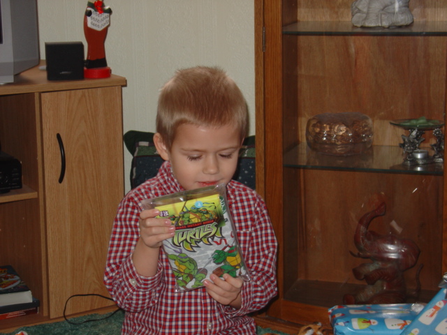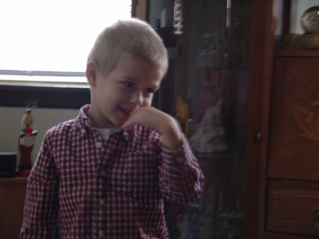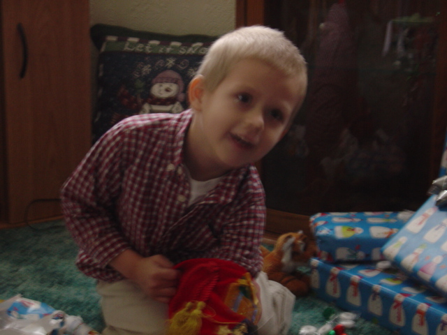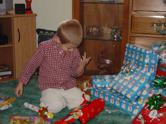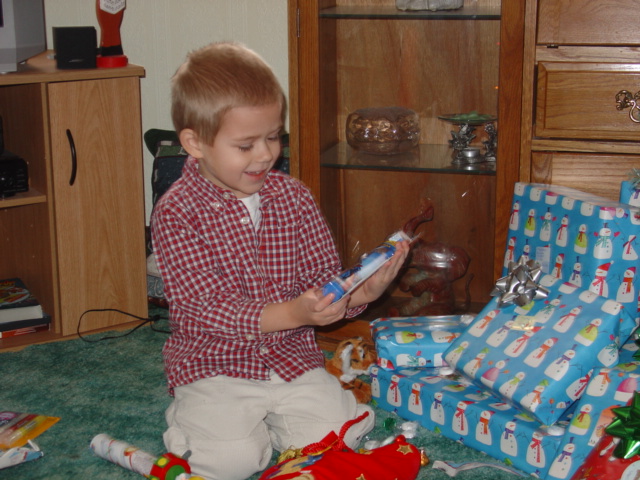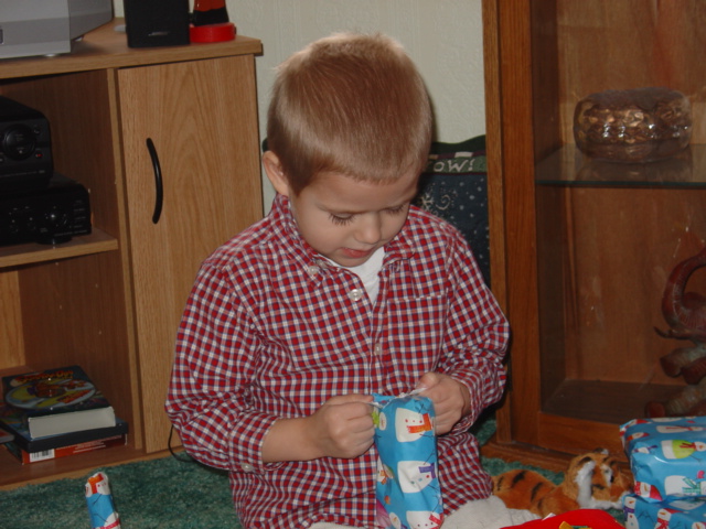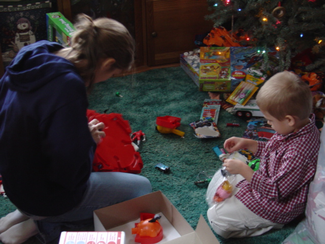 It was a very digital Christmas. Tristan got his very own digital camera (for real, Fisher-Price style). I got a DVD burner and boatloads of DVDs and a digital voice recorder (dictator) - for memo'ing song ideas at work. Steph got some DVDs, a dustbuster and a very non-digital diamond/sapphire necklace. Amongst many other things, for all of us. Tristan also got a very real dwarf hamster that he named Hamster Junior. Which then changed to Brown Eyes. But he always just calls him "little guy". It's cute.