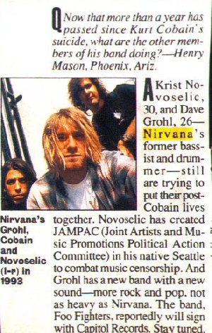 - Foo Man Shooed! : Article about Pat Smear leaving and new guitarist Franz Stahl.