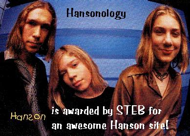 Hey look we have won an award...It's our first. We would like to thank... Well Vanessa who gave it to us and of course Hanson without whom this page would not be a success (aren't acceptance speeches corny?).