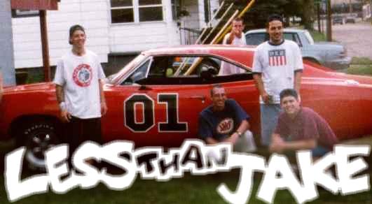 Fueled from the start by the band's passions - guitarist/vocalist Chris' infatuation with early '80s anything (particularly The Dukes of Hazzard and Quiet Riot),and drummer Vinnie's rabid obsession with the Pez universe. - LTJ formed as a three-piece in the summer of 1992, adding horns about six months later. The name itself, for those unfamiliar with esoteric North American vernacular, means "not up to par," the word "jake" is a synonym for "cool," "swell," "fine," etc. It also refers to Vinnie's bulldog Jake, who as the story goes, was weaned on Red Lobster meals while Vinnie was fed nothing but TV dinners while growing up; hence Vinnie 's been "less than Jake" for years.