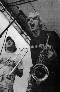 You say you don't know Less Than Jake? Then it's time you got yourself aquainted. Having risen from the fertile punk rock grounds of Gainesville, Florida, a college town boasting a thriving scene long before MTV or mainstream radio ever got wind of the pop-punk phenomenon, Less Than Jake - or LTJ, as they're known around these parts - have evolved into a hybrid monster boasting the genetic heritage of, say, The Toasters crossed with The Ramones, or maybe The Specials sired by Screeching Weasel. Their blend of ska- punk, thoroughly distinct from other progenitors of the genre (i.e. Operation Ivy, The Mighty Mighty Bosstones), meshes three-chord exuberance with high impact brass power, leaving kids high stepping seemingly anywhere they play. Their live shows, which have taken place everywhere from 15,000 seat arenas to condemnation-ready divas (for acts as varied as Green Day, Bootsy Collins and Voodoo Glowskulls), usually end with an array of stuffed animals in the clutches of an army of worn, sweaty, happy, danced-out, youths, many chanting LTJ's patented hook-laden choruses with throats cracked hoarse, most of whom exhibit sprayed silly string dangling from their hair - all staples of the LTJ live experience.
