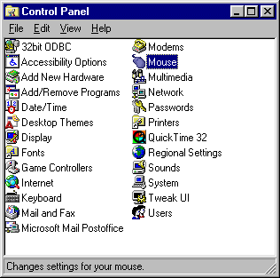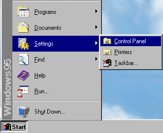 2. In the START menu on the TASKBAR, choose SETTINGS->CONTROL PANEL