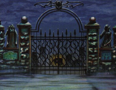 A cool mist surrounds your body as you stumble into a land of darkness. You look around, squinting, your eyes search to see some sort of light within the shadows. A gate lies before you.