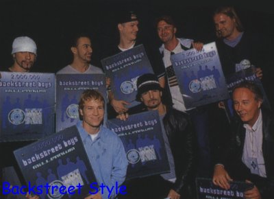 These two pictures were taken before the concert. The guys got a plate for selling 2.000.000 copies of the new millennium album!