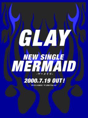 | 2000.7.19 : Release of Glay's 20th single - MERMAID. Code No : PCCU-00002 Price : 1050 Yen Songs : MERMAID (Song & Lyrics by Takuro, arranged by Masahide Sakuma & Glay) c/w ROCK ICON (Song by Takuro, Lyrics by Takuro and Teru, arranged by Masahide Sakuma & Glay) MERMAID ~instrumental~ (Song by Takuro, arranged by Masashide Sakuma & Glay) The first press limited edition SPECIAL MERMAID (import size box) will come with a "B" (large) size original poster. |
