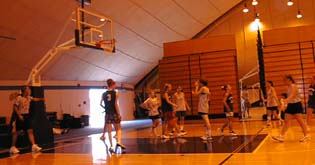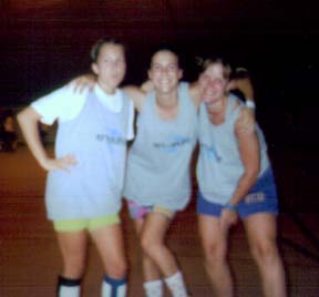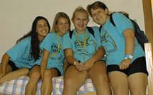 Lori, Jill, April, and Wendy all on the bed in my dorm room