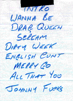 Set list from Lomax, Liverpool, Nov. '97