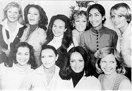 ill-fated reunion. Front row, left to right: Kiki Haakanson; Denise Perrier; Carmen Duijm Zubillaga; and Penelope Coelen. Back row, left to right: Corine Rottschafer; Rosemarie Frankland; Carole Crawford; Ann Sidney; Reita Faria; and Belinda Green.